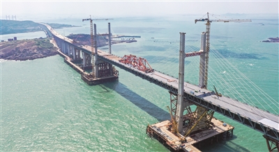平潭海峽公鐵兩用大橋最后的合龍段位于鼓嶼門(mén)航道橋。平潭海峽公鐵兩用大橋全長(zhǎng)16.34公里,起于福建省福州市長(zhǎng)樂(lè)區(qū)松下鎮(zhèn),經(jīng)人嶼島、長(zhǎng)嶼島、小練島、大練島,依次跨越元洪航道、鼓嶼門(mén)水道、大小練島水道、北東口水道。大橋共設(shè)有元洪航道、鼓嶼門(mén)水道和大小練島水道等3座雙塔斜拉航道橋。