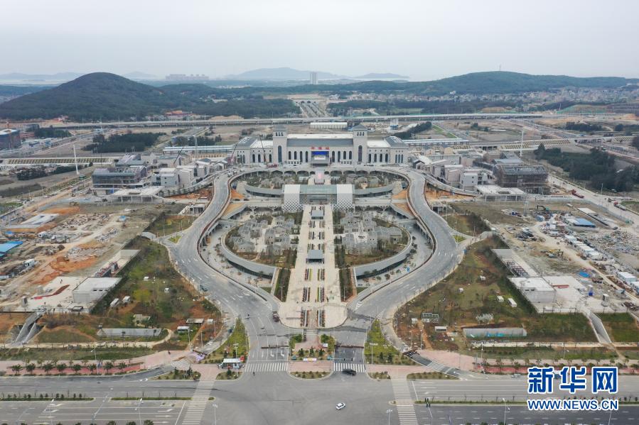 12月22日拍攝的建設中的福平鐵路平潭站(無人機照片)。 眼下,福(州)平(潭)鐵路平潭站內外裝飾、廣場綠植等各項施工正加緊進行,為計劃于12月底的開通運營做準備。福平鐵路是京福高鐵的重要延伸段,線路全長約88公里,設計時速200公里。新華社記者 林善傳 攝