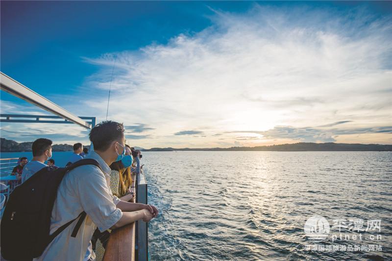 值得一提的是,這條體驗航線也被稱為“海上日落之旅”。當夕陽的余暉灑落在海面上,美不勝收,隨著太陽逐漸落山,天空也被日光映照成粉色。“這是非常奇妙的體驗,海上風光和陸地上的完全不一樣,今天天氣非常好,看著波光粼粼的海面,心情瞬間被治愈。”游客陳菊說。