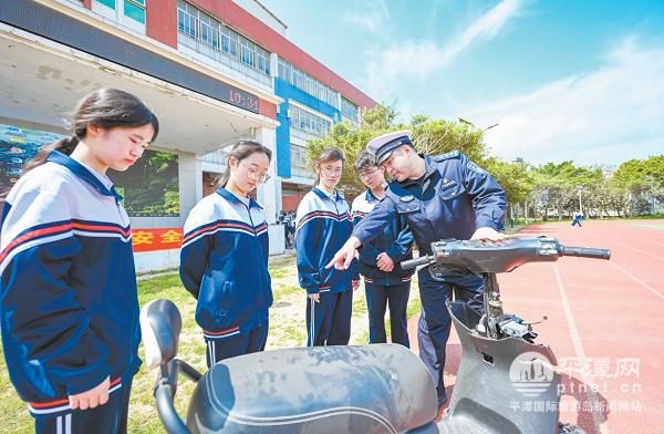在平潭職業中專學校,交警通過播放PPT、案例分析等方式,向師生講解電動二輪車駕乘典型事故案例,分析了無證駕駛、超速行駛等違法行為的危害,引導學生自覺抵制各類交通違法和不文明行為。