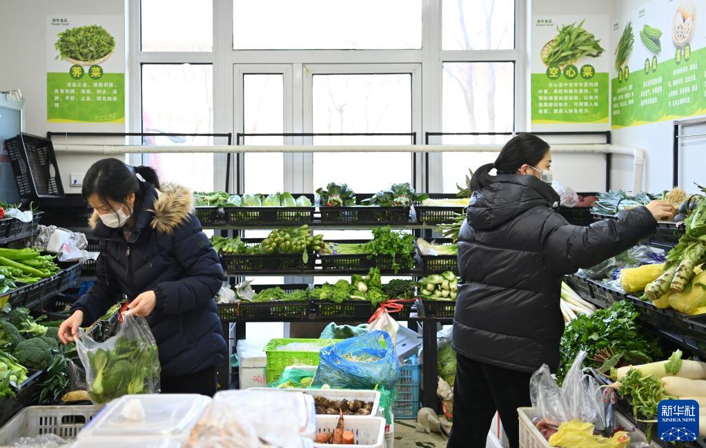 1月11日,居民在天津市西青區中北鎮一小區的商店內選購蔬菜。新華社記者 李然 攝