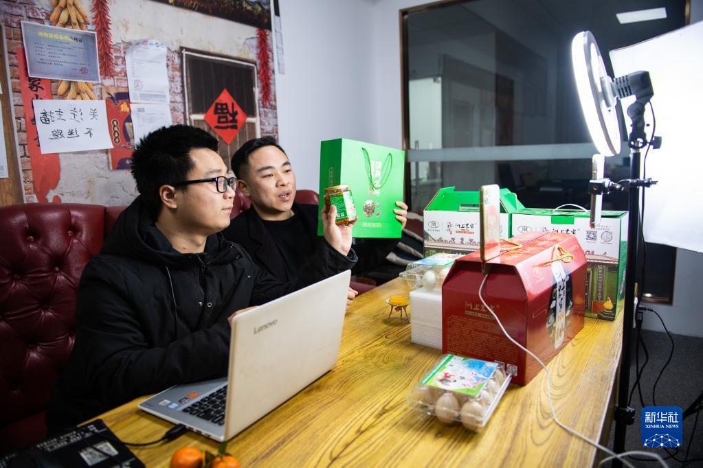 2022-03-03 16:43:24 來源:新華網2月22日,蔣連超(右)在湖南益陽市沅江高新技術產業園區與搭檔一起直播帶貨。25歲的蔣連超,2019年從湖南城市學院測繪工程專業畢業,放棄了進入大型國企的機會,成為湖南省沅江市胭脂湖街道南竹山村的“鄉村合伙人”。憑借自己在校期間積累的豐富創業經驗,他帶領村民辦農莊、搞養殖,還組建團隊實現了當地農產品銷售的網絡化運營。