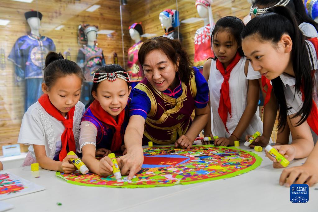 這是2019年7月15日拍攝的赤峰市松山區興安街道臨潢家園社區的民族融合小課桌。新華社記者 劉磊 攝