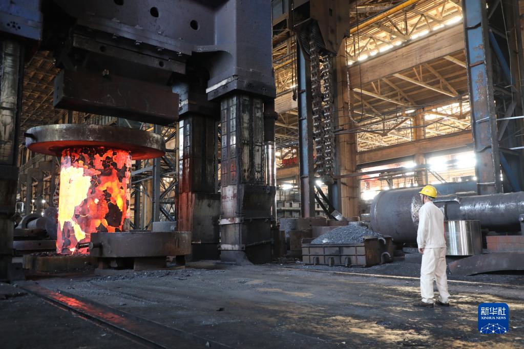 在中國一重集團有限公司,工人在車間內忙碌(5月19日攝)。新華社記者 唐鐵富 攝