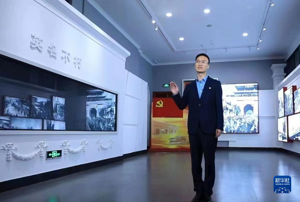哈爾濱工業大學思政課教師張世昌在東北烈士紀念館講青年系列黨課的錄制現場(資料照片)。新華社發
