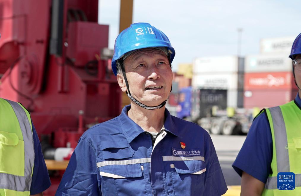 許振超在山東港口青島港集裝箱碼頭調研(9月2日攝)。新華社發(閆軍攝)
