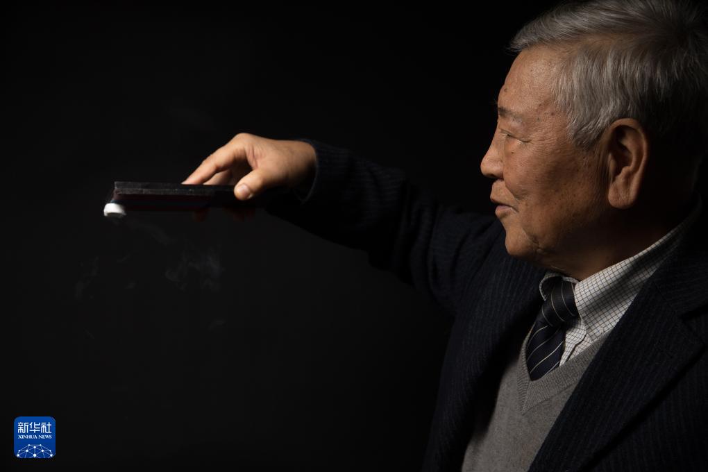 趙忠賢在中國科學院物理研究所演示磁懸浮現象(2017年1月8日攝)。新華社記者 金立旺 攝