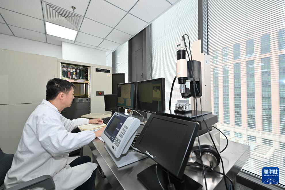 在天津陳塘科技商務(wù)區(qū)天津知微材料科技有限公司,檢測(cè)人員通過(guò)X射線多晶衍射儀進(jìn)行材料分析(3月26日攝)。