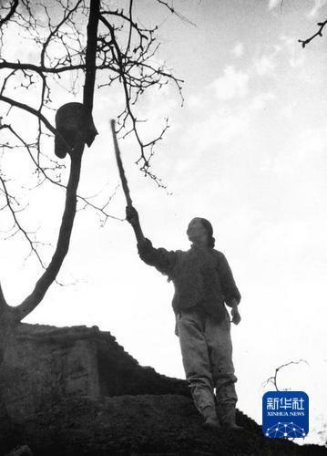 這張照片拍攝于1942年,作者江波。照片中,一棵粗壯的棗樹挺拔地站立在藍天之下,樹上懸掛著一口鐘。一名婦女站在樹下,隨著她揮臂用力敲擊,鐘聲響徹天空……她是誰?又為何敲響這口鐘?這張中國照片檔案館的館藏照片,引出一段令人難忘的抗戰歲月。