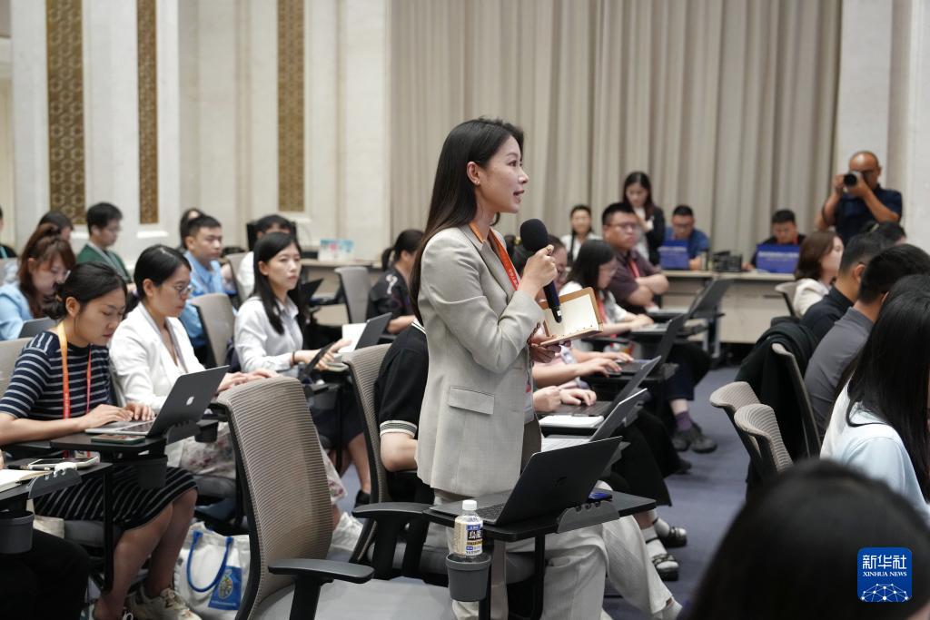 7月3日上午,國務院新聞辦公室舉行新聞發布會,文化和旅游部副部長盧映川、廣電總局副局長劉建國、中央廣電總臺副臺長王曉真、中國人民抗日戰爭紀念館館長羅存康介紹中國人民抗日戰爭暨世界反法西斯戰爭勝利80周年主題展覽和推出優秀文藝作品、文藝活動有關情況,并答記者問。這是記者在發布會上提問。新華社記者 才揚 攝
