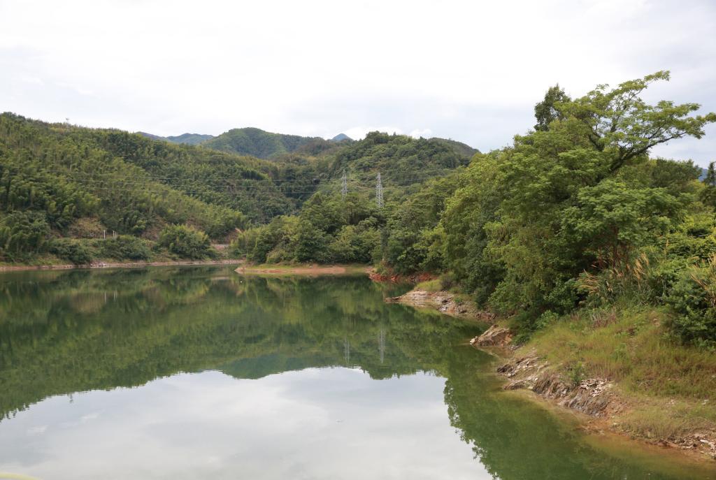 這是陳漢鄉的釣魚臺水庫,水庫中央樹林處為“陳漢溝會師”舊址(7月22日攝)。新華社記者 肖磊濤 攝