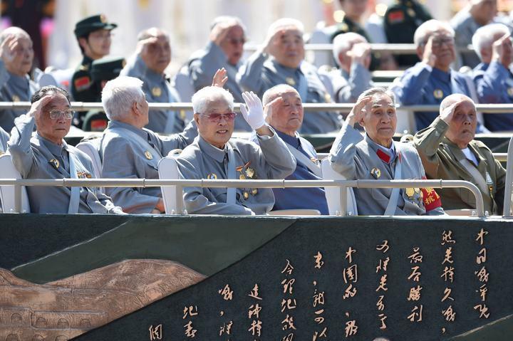 2015年9月3日,中國人民抗日戰爭暨世界反法西斯戰爭勝利70周年紀念大會在北京隆重舉行。這是抗戰老兵乘車方隊通過天安門廣場。新華社記者申宏攝