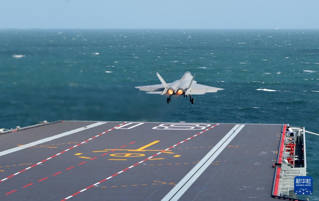 日前,海軍福建艦開展入列后首次海上實兵訓練。這是殲-35艦載機彈射起飛。新華社發(高澤明 攝)