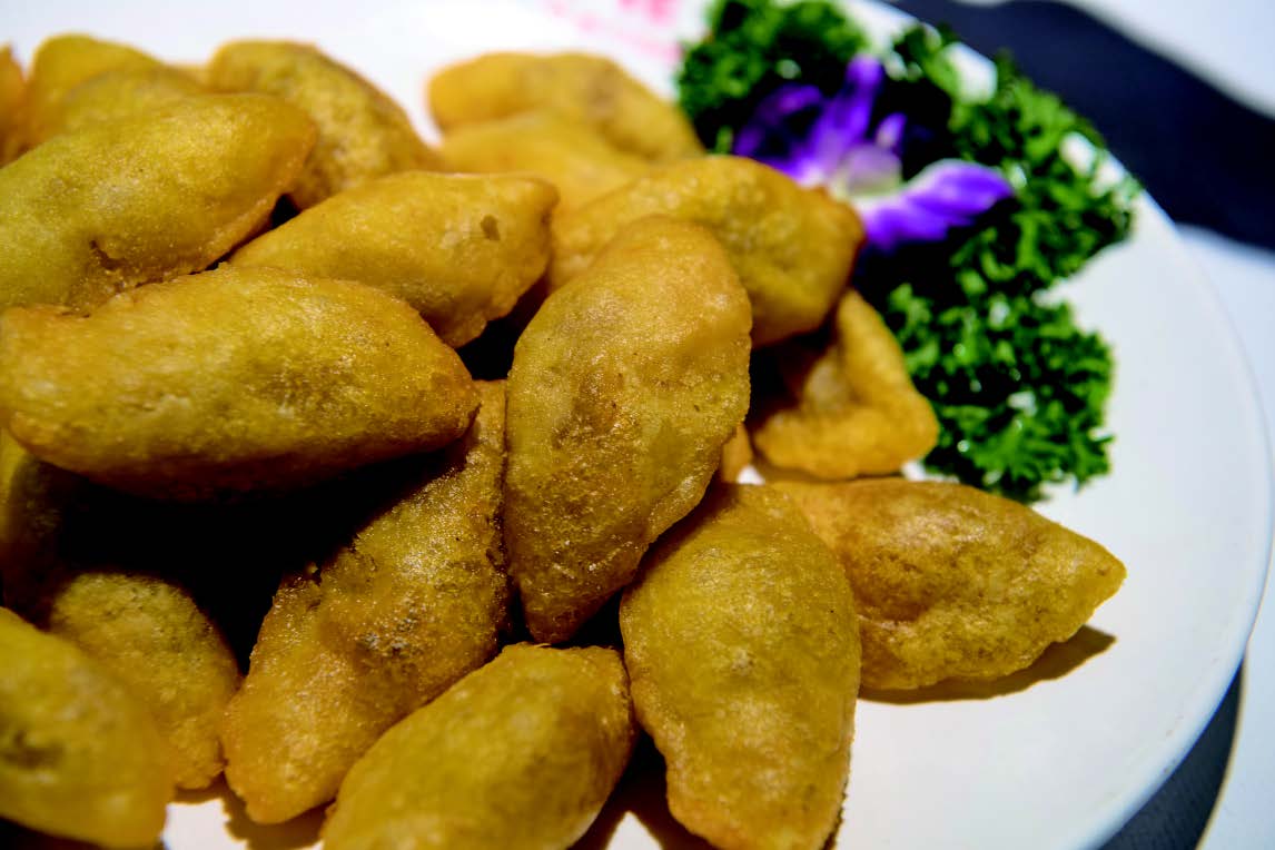 肉餃。精致的盤子里油炸肉餃散發(fā)著肉香。半個手掌大的金黃色油炸肉餃沿襲了餃子的包法,封口處有序地捏出了疊加形的花邊,表層酥皮經(jīng)油炸之后,呈現(xiàn)出類似牛角包的紋路,給人以視覺上的享受。傳統(tǒng)的配方和味道,配上新穎的花式,這色香味俱全的美食來自于平潭美食達(dá)人林若晨。她介紹道,按照三肥七瘦的比例來挑選豬肉,紅白兩種豬肉質(zhì)地清晰最佳,然后分開切成肉丁;黑筍也需要挑選整塊的黑筍進(jìn)行手工的切割;將食材準(zhǔn)備好后,便可以加入蔥苗,進(jìn)行調(diào)味。最后將包好的肉餃緩緩放入小火燒熱的油鍋內(nèi),翻面,炸熟即可出鍋。