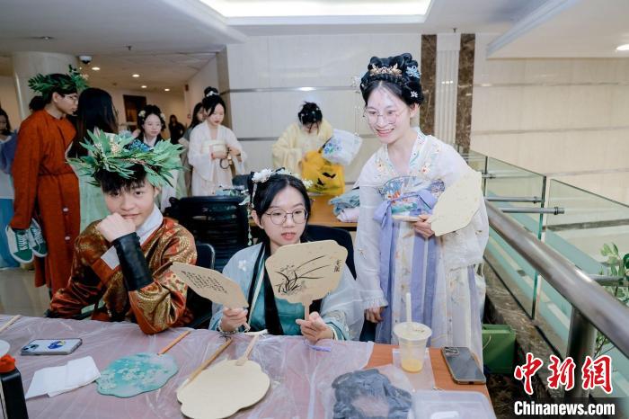 下午的清明游園會(huì)上,兩岸學(xué)子一起體驗(yàn)清明民俗:制作青團(tuán)、手繪紙鳶、繪制團(tuán)扇、體驗(yàn)漢服、編織柳枝花環(huán)……來(lái)自臺(tái)灣臺(tái)中的王翊安目前正在華東師范大學(xué)就讀,他說,這些多元的活動(dòng)讓今年的清明節(jié)很有儀式感,可以讓兩岸年輕人不僅在理論上更在實(shí)踐中,感受清明文化的內(nèi)涵和傳承。