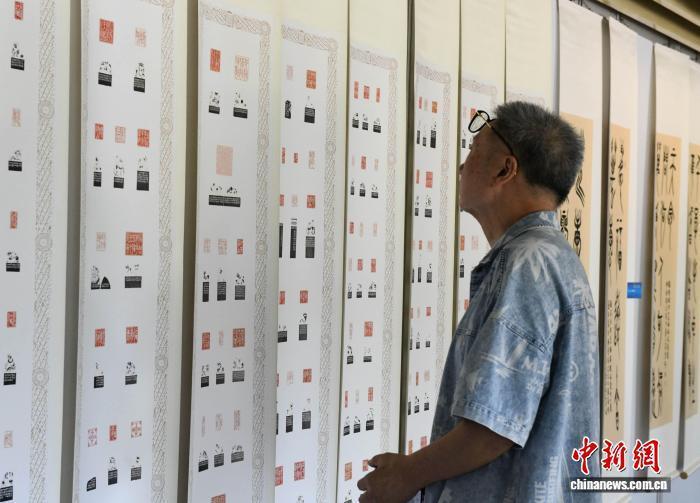 9月15日,“渝臺金石緣·兩岸翰墨情”書法篆刻藝術交流活動在重慶舉行,圖為展覽現場。中新社記者 周毅 攝